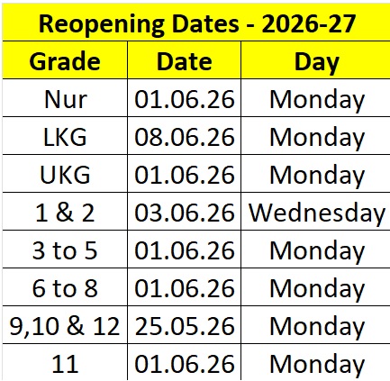 Reopen Dates – 2026-27